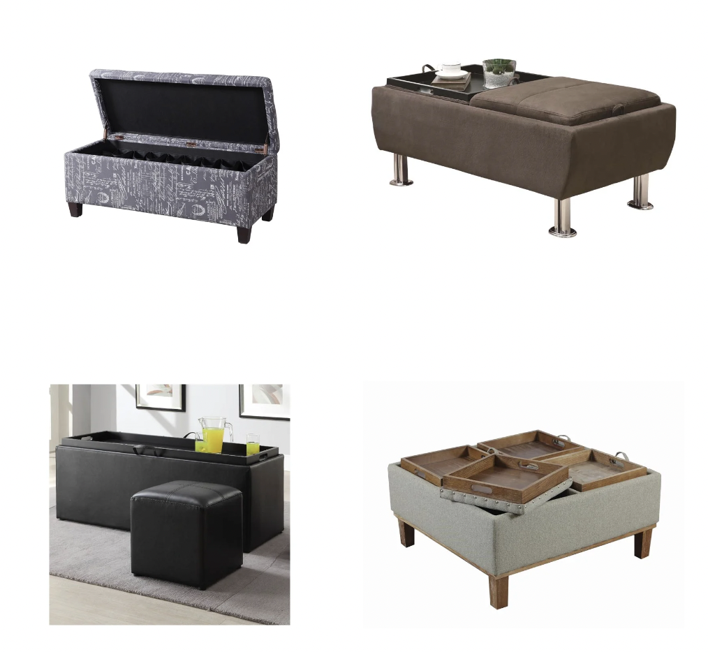 Ottomans and benches have awesome perks. They can be used as extra seating or a comfy spot to prop your feet, but many also open to reveal storage handy for blankets, shoes, and anything else you don’t need every day. Try storage ottomans and benches with serving trays if you love hosting guests.